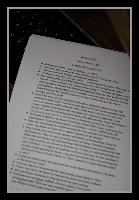 I tackled the minutes from the March meeting of Northland Photography Club and